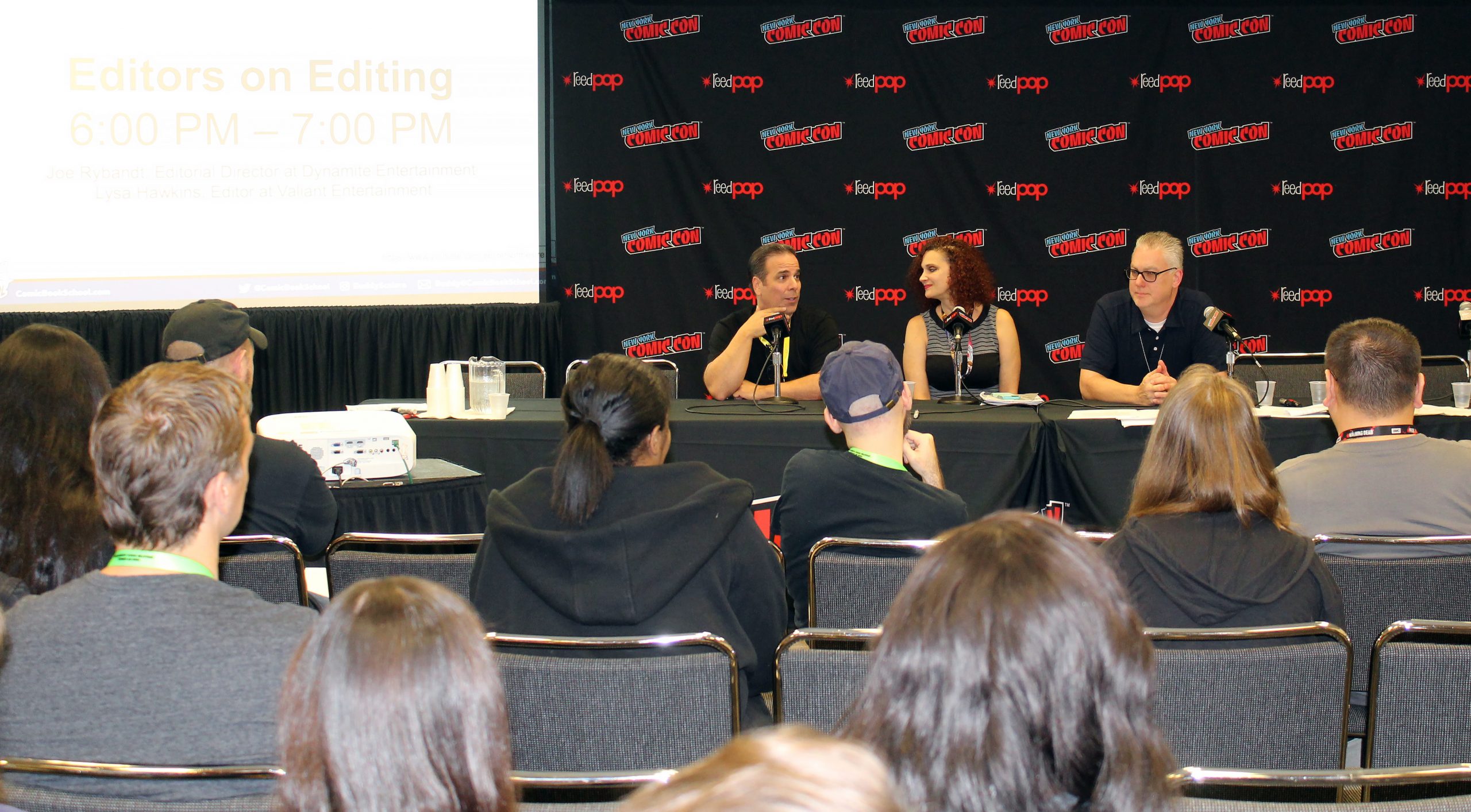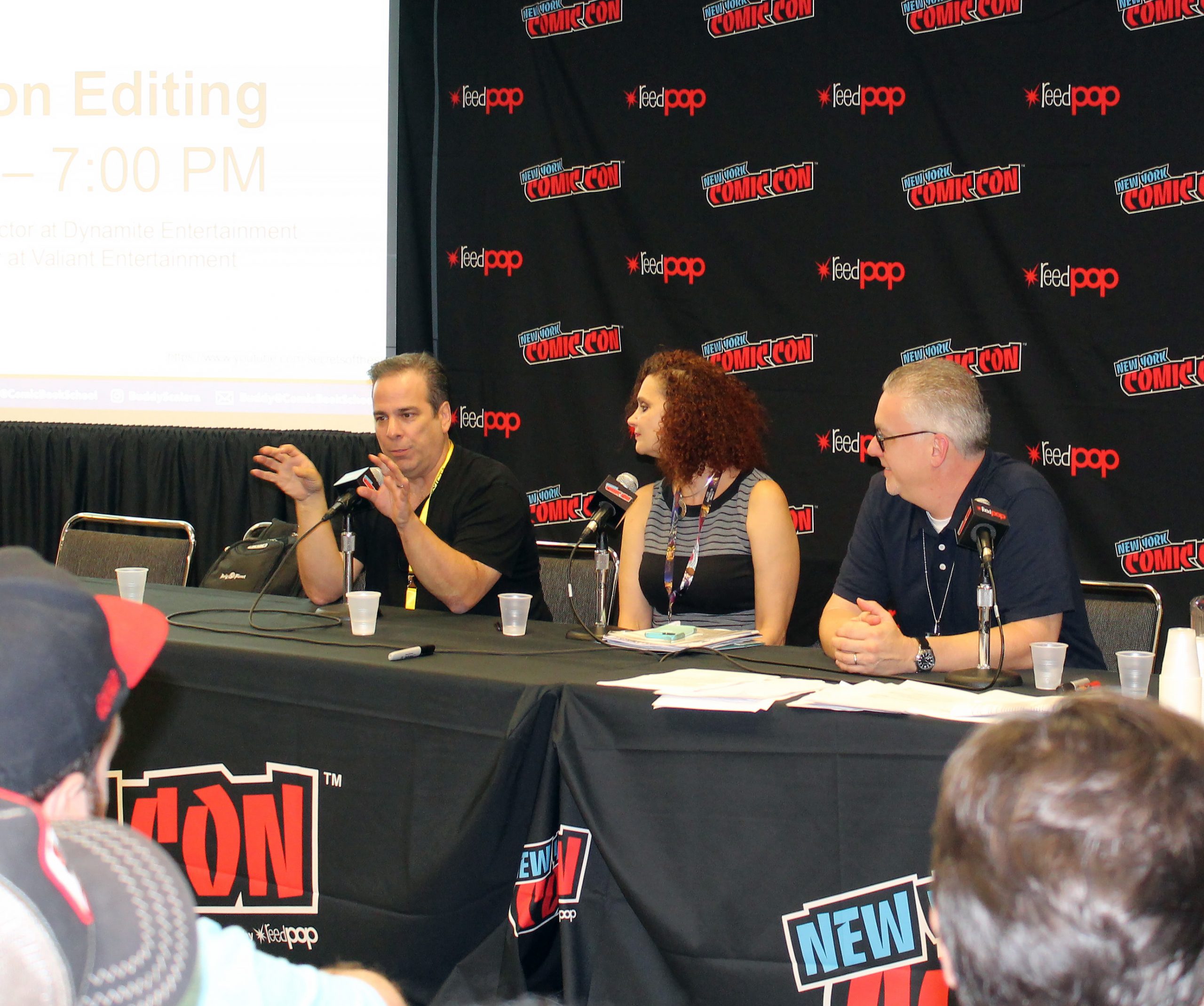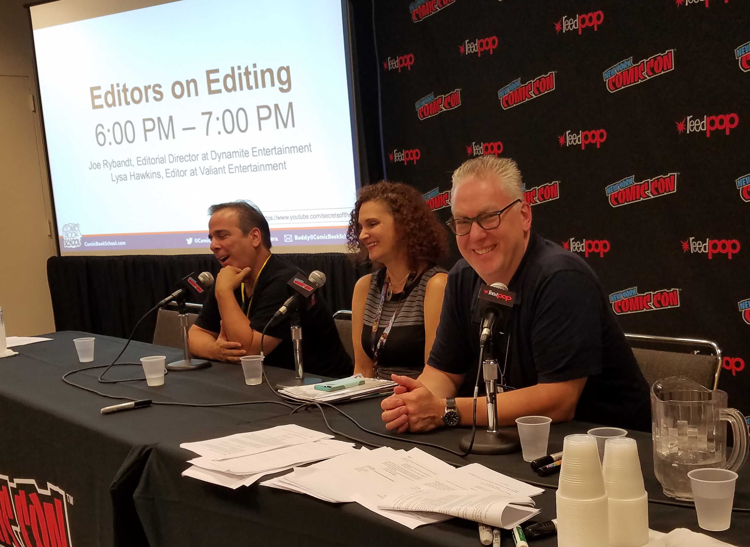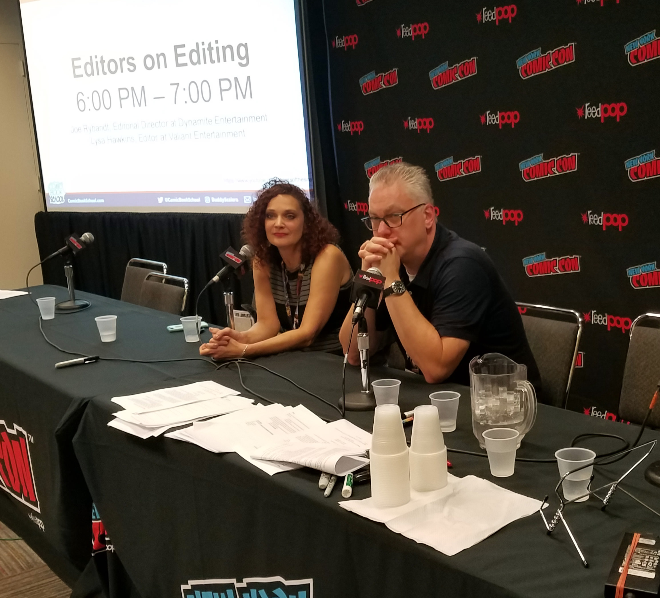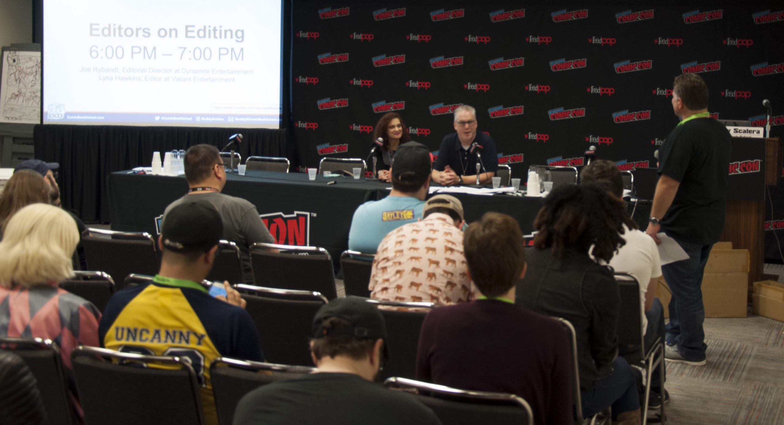 Thank you to Lysa Hawkins, Editor at Valiant Entertainment, Joe Rybandt, Editorial Director at Dynamite Entertainment, and Jimmy Palmiotti of PaperFilms for our “Editors on Editing” panel. You can see from the photos how many people had questions for our panelists.