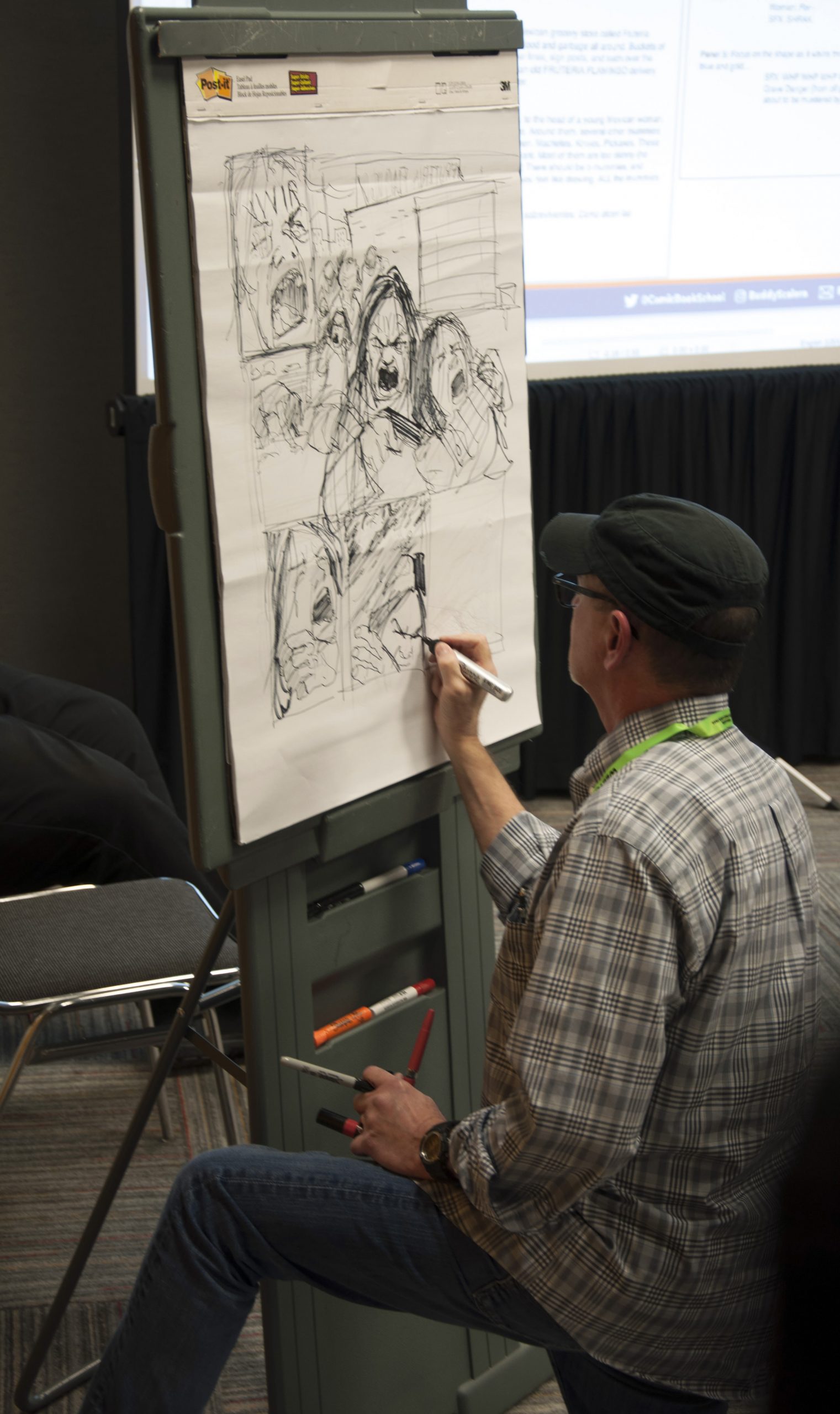 Thanks to Sean Chen (Artist, Iron Man, Wolverine, X-O Manowar, Bloodshot), Jerry Ordway (Superman, Shazam), Terry Moore (Strangers in Paradise, Rachel Rising), Jamal Igle (Supergirl, Molly Danger), and Tim Seeley (Hack/Slash, Batman) for our “Storytelling on the Page for Artists & Writers” panel.